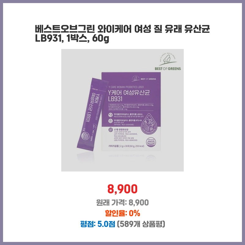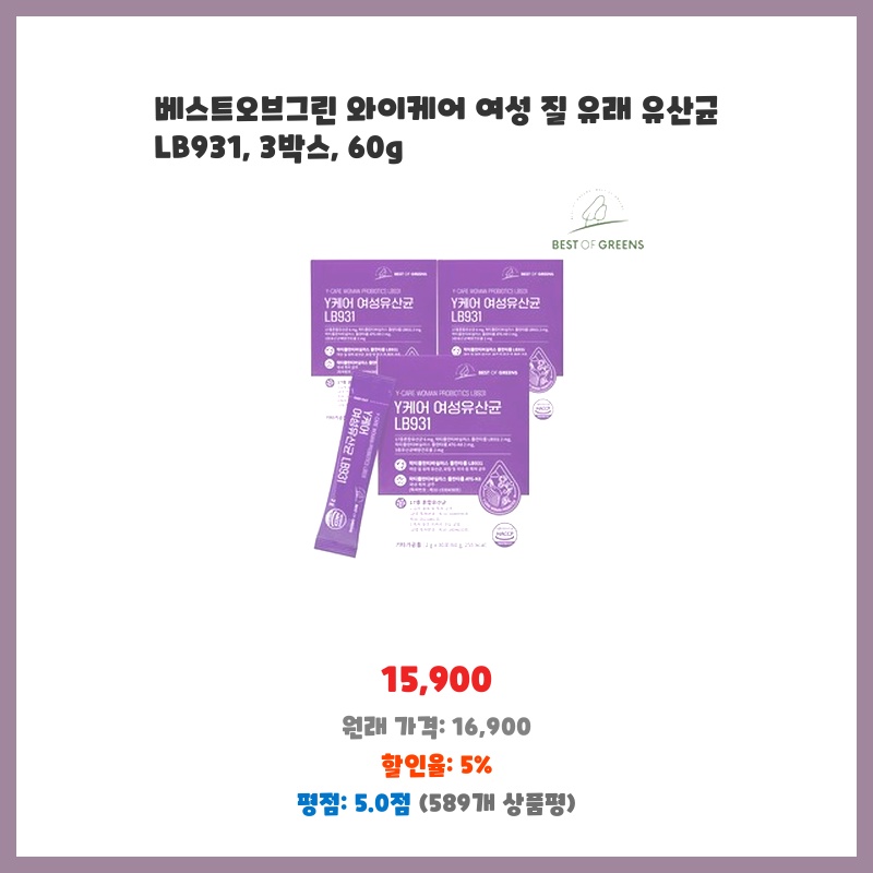 여성질유산균, LB931, 베스트오브그린, 여성건강, 친밀한건강