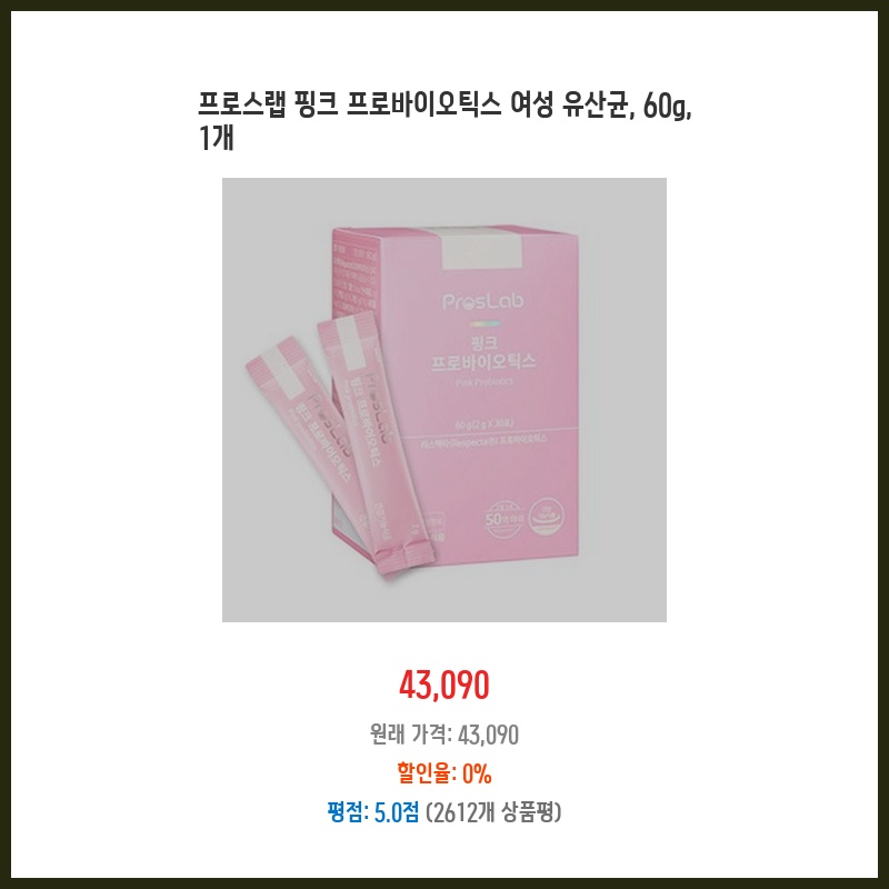 프로스랩 프로바이오틱스 덕분에 건강이 눈에 띄게 좋아졌어요. 소화기 문제가 크게 개선되었고, 면역력도 향상된 것 같아요.